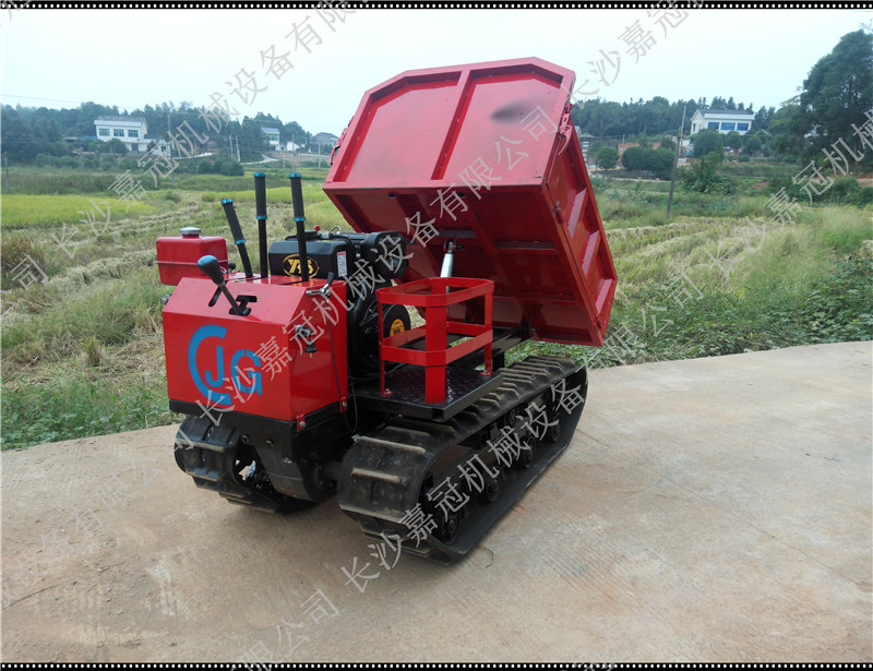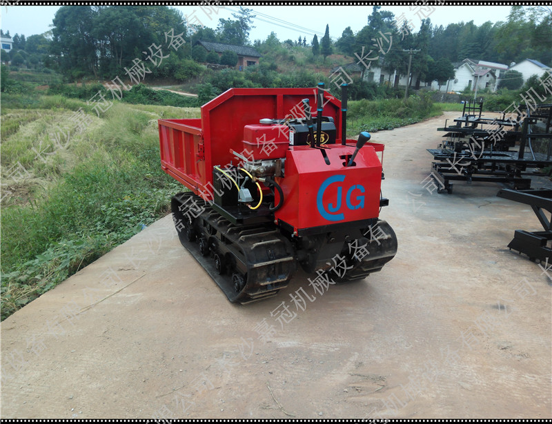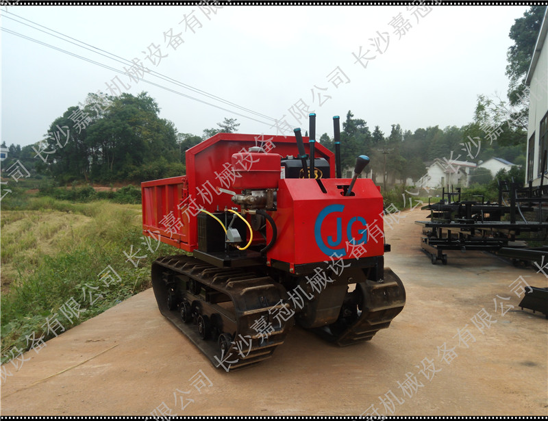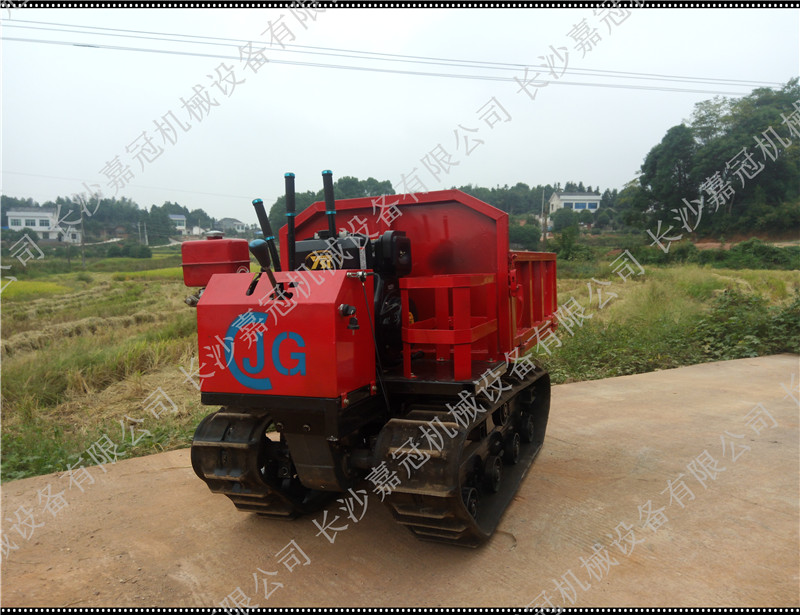 长沙嘉冠机械设备有限公司小型手扶式履带运输车,最大平路载重1吨,型号JG-1T,车身小巧通过性强,整车仅有一米宽,适合农林果牧,水利建设,基建工程等工作环境的运输作业。