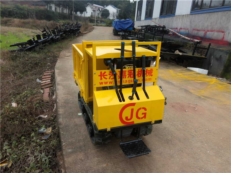 长沙嘉冠出品手扶式0.8吨款JG-800A小型履带车,适合农田、蔬菜蔬菜棚、果园、山路、泥路、工地运输混凝土,砂石,钢铁类材料等重量级的物资。