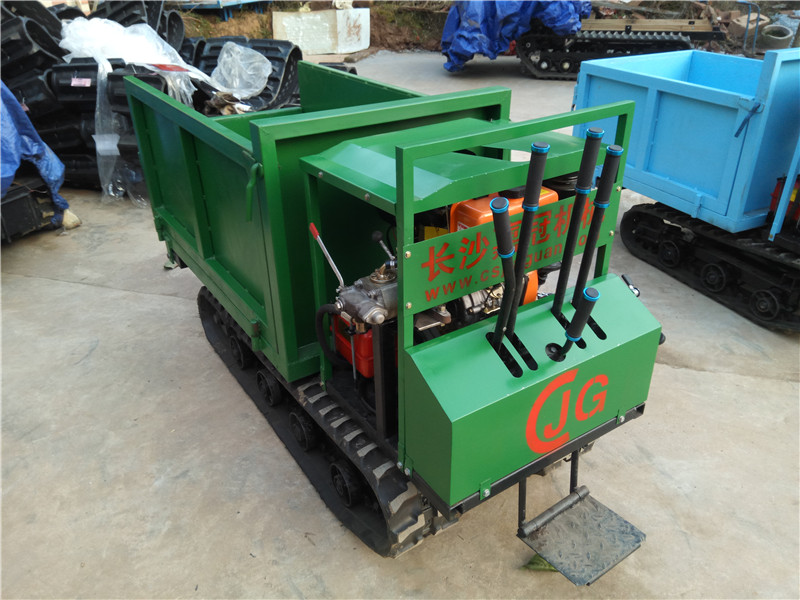 JG-1000B型小型履带运输车能适应水稻田、沼泽地、泥泞的田间道路、崎岖的山路、松软的草地和沙漠、湿滑的冰面和雪地等复杂恶劣路况,在农田林地果园运输、货场装载、水利建设、基建工程、矿山场所应用广泛。